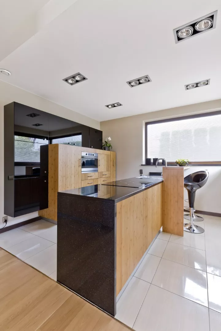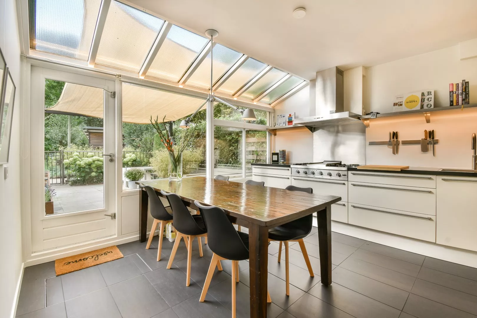This is the most popular layout, and it’s popular for a reason. Extending the rear of the house and replacing the back wall with bi-fold or sliding doors creates a space that feels connected to the garden even when the doors are closed. The kitchen runs along one or two walls, a dining area sits centrally, and the whole room opens up on warm days. For families with children, having eyes on the garden from the kitchen is a genuine quality of life improvement. This layout works best on properties with a south or west-facing garden that actually gets direct light in the afternoon.